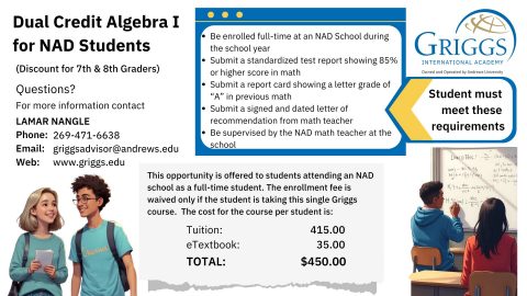 Complete the enrollment packet choosing whether to enroll in 1 or 2 semesters and email it in to us. Additional documents are also needed for academic approval (as listed above.) Please email the packet, copy of birth certificate, & supporting documents to griggsadvisor@andrews.edu.