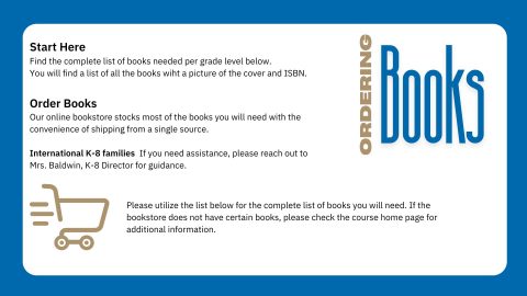 Elementary and Jr. High: After you're fully enrolled, go to Griggs Online and select your course. Click on "Ask For..." and select the eTextbook request button. Check your Griggs Online email for a message (within 48 business hours of sending in the request) with information on how to access your eBook.